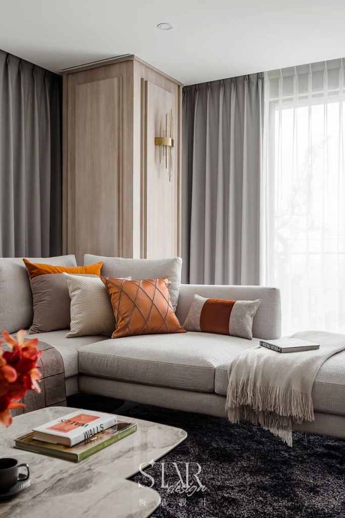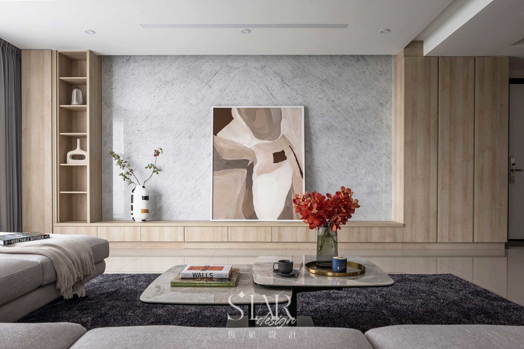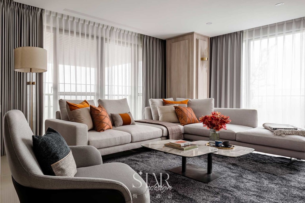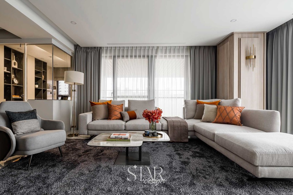 客餐廳是屋主認為提升家庭凝聚力的重要場所,希望可以解決牆下大樑的問題,並呈現溫馨的感覺;主臥室的部分女主人私心希望能夠有飯店感的更衣室,實現一直想要有個更衣室的夢想,同樣身為女人,我也非常能夠了解女主人的心情,因此特別著重在更衣室的規劃上,希望能為女主人設計出專屬的更衣室,享受屬於自己的小天地。