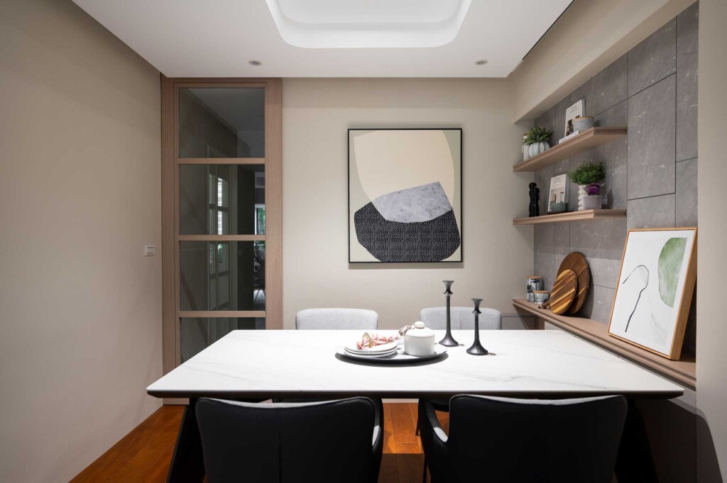 安靜的、內斂的、一切歸於沉靜的環境氛圍,正是住宅空間應當具備的回饋性,並根據屋主的習慣與喜好客製化安排,適切地回應其生活型態。