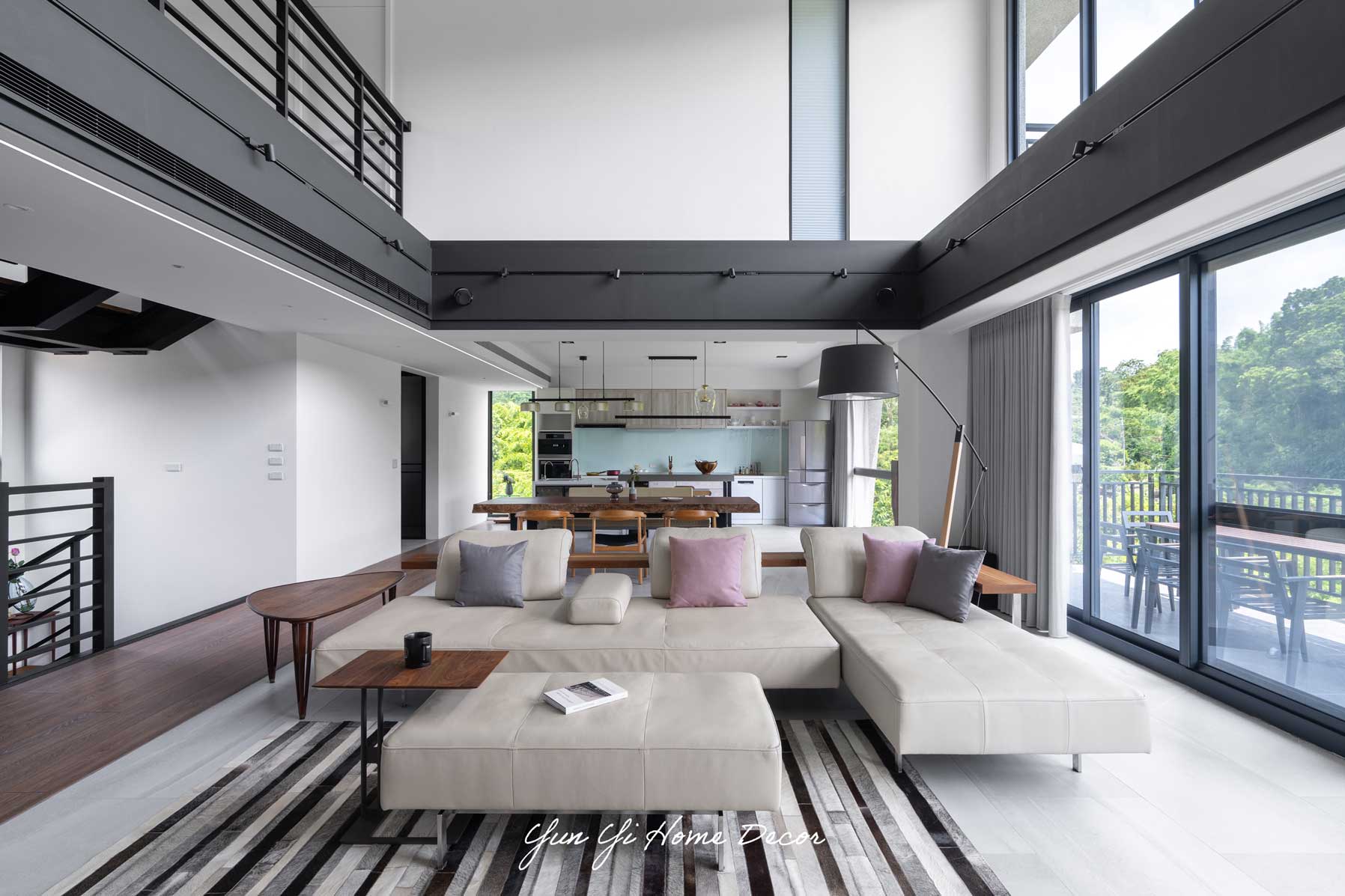 本案於郊區,享有寧靜的幽谷也擁有少見的大片山景與無限開闊的視野,少了其他建築物的遮光,搭配大面積落地窗的自然採光,陽光自然的灑進家中每個角落。