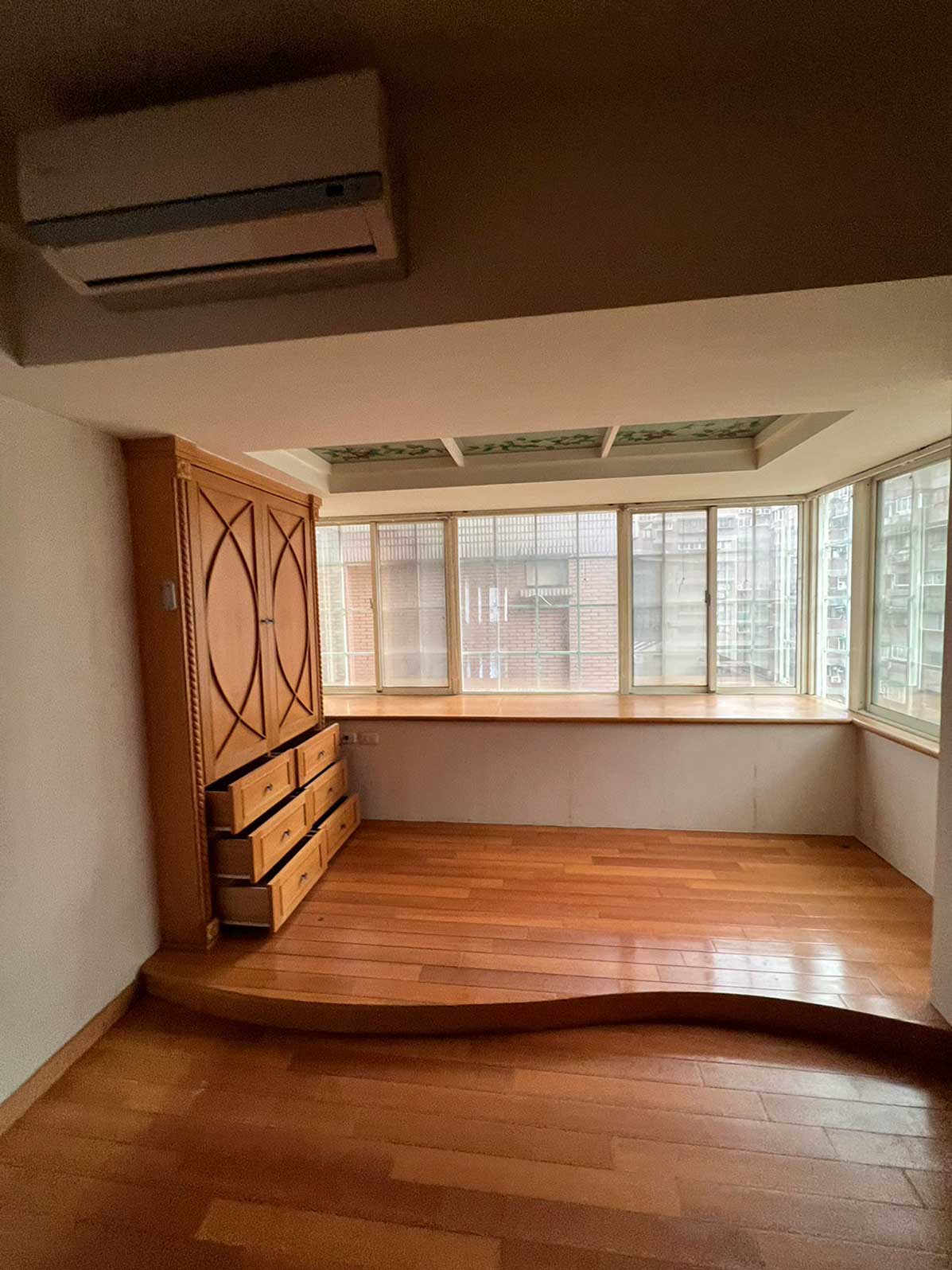 本案屋齡40年以上,屋主買來後對於原始的裝潢不滿意,需要做較大的調整,我們在空間規劃上,將其中一間浴室馬桶與淋浴間分離,讓居住者可以洗澡與廁所同時使用,能保有隱私,另外屋主有露營設備需要收納,且家庭成員較多,我們在規劃上新增兩個儲藏室,也在主臥室再隔出一個更衣室,讓衣物較多的屋主收納齊全,因為屋主較少下廚,我們將廚房空間縮小,並將封閉式的廚房改為開放式,屋主對於整體的大改造很滿意,收納很多,卻不顯得擁擠。