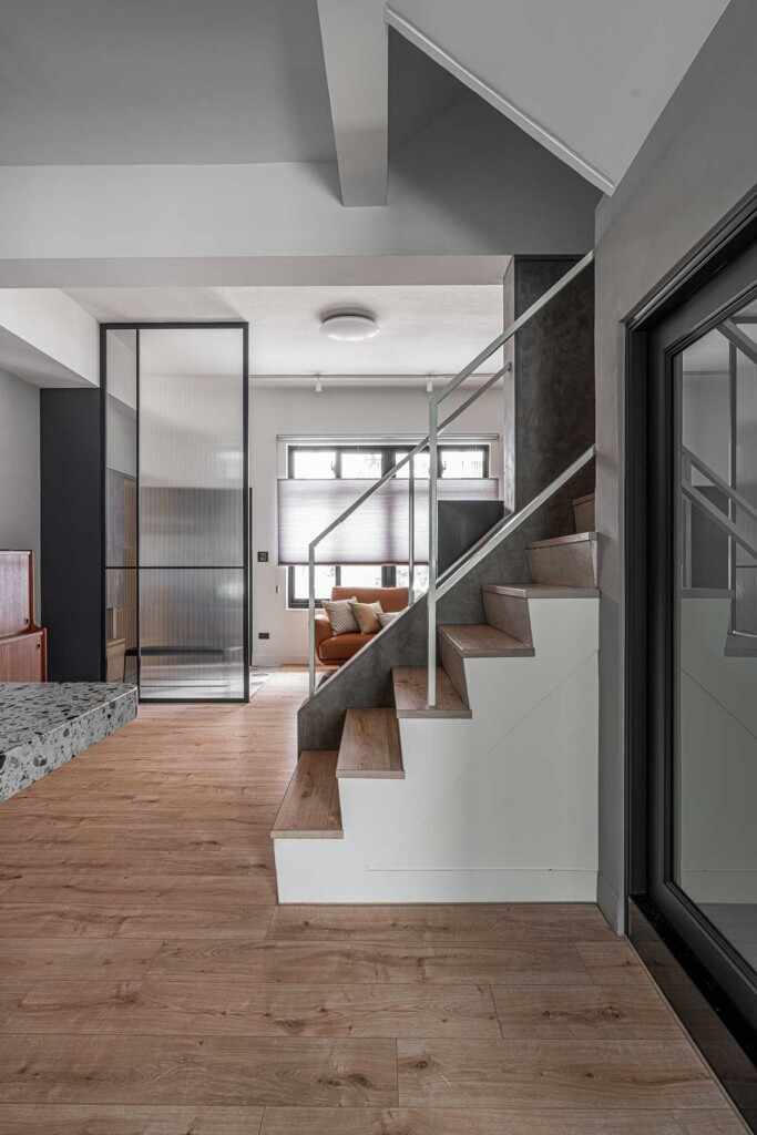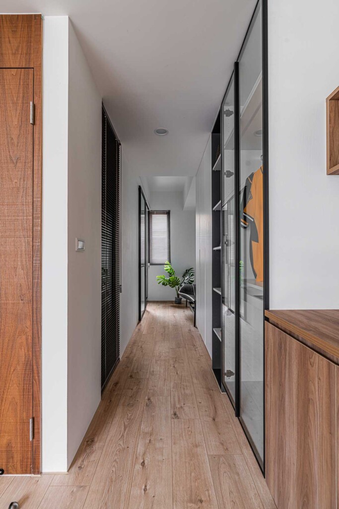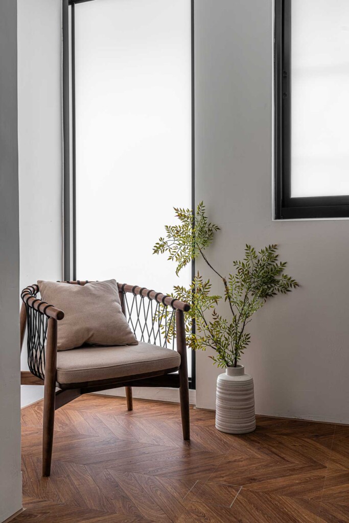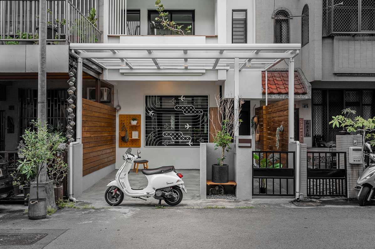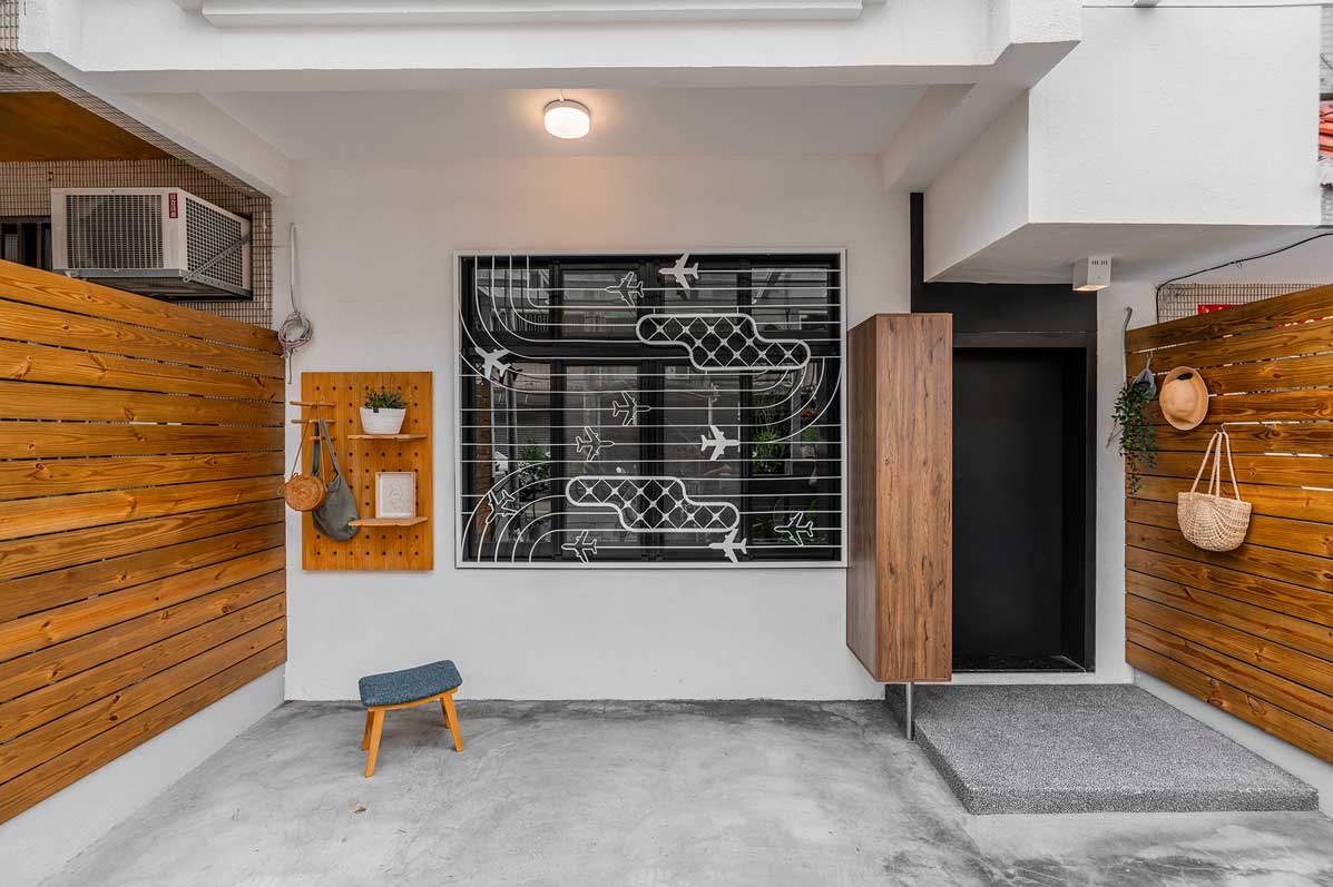 客戶喜愛飛機,於是,我們以 「TAKEOFF」 為意象,透過空間建構,讓動線光線自在流動,木皮的溫潤質感,讓歸家的人穩定且踏實。車庫窗上的復刻鐵件飛機窗花,彷彿登機口,等待夢想啟程,迎向更遼闊的天空。