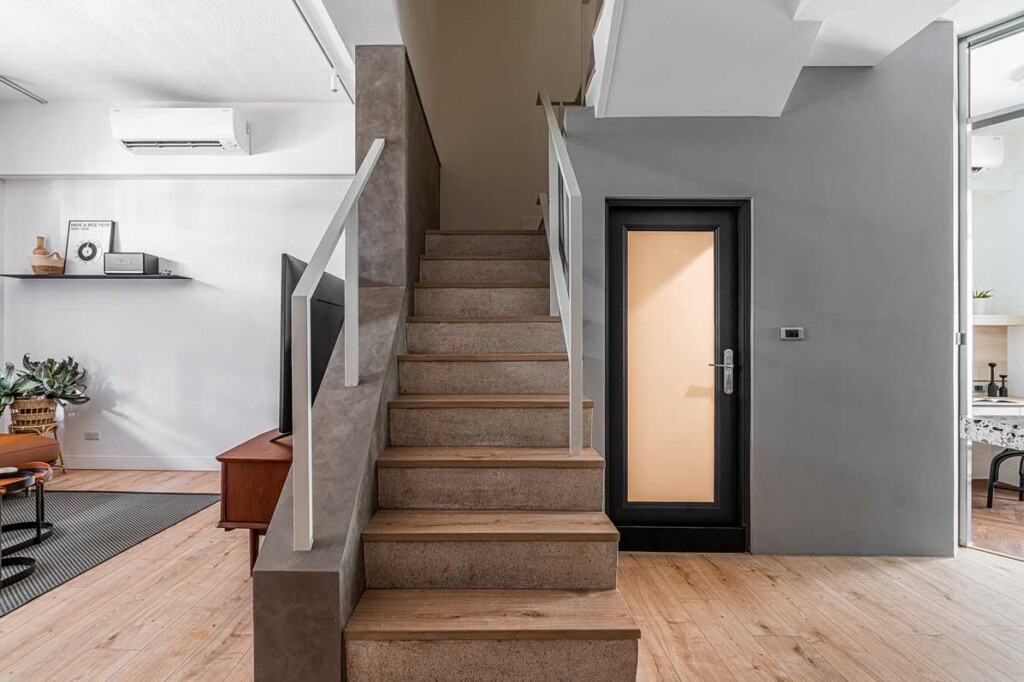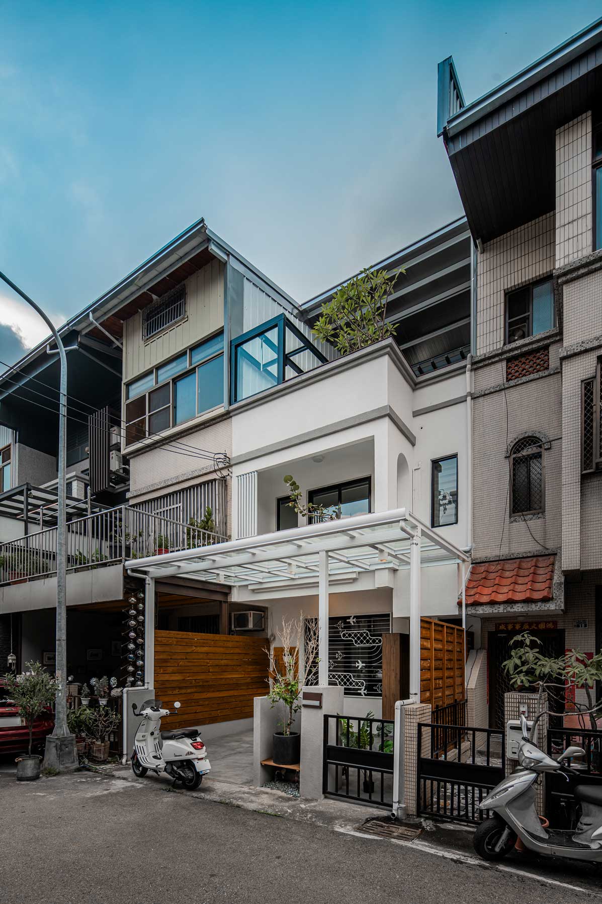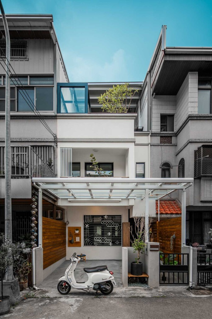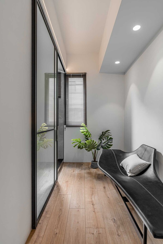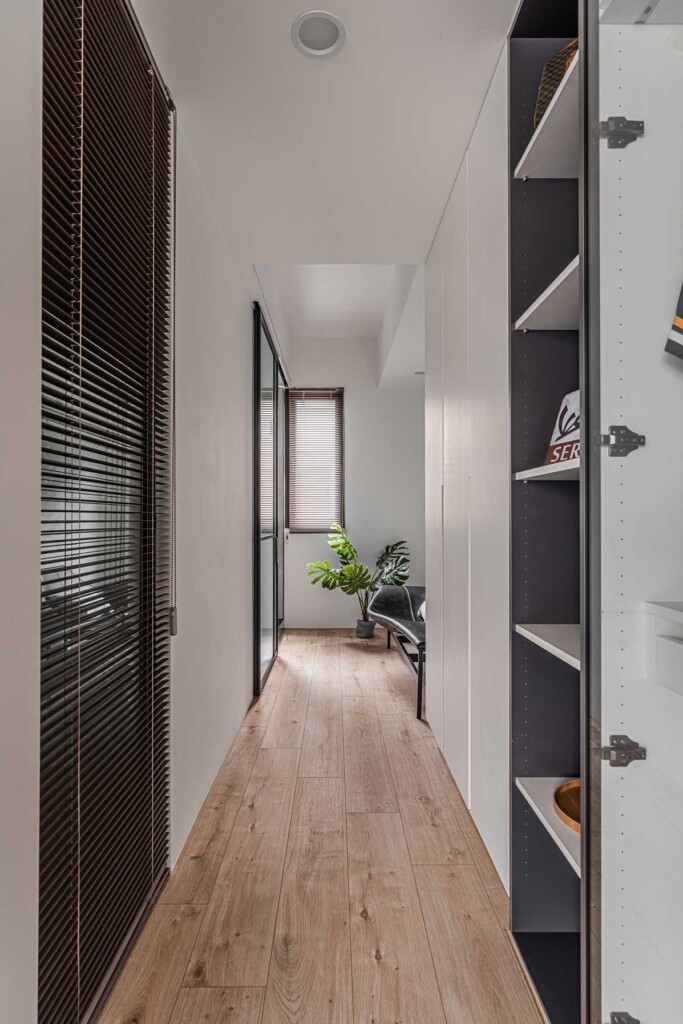 客戶喜愛飛機,於是,我們以 「TAKEOFF」 為意象,透過空間建構,讓動線光線自在流動,木皮的溫潤質感,讓歸家的人穩定且踏實。車庫窗上的復刻鐵件飛機窗花,彷彿登機口,等待夢想啟程,迎向更遼闊的天空。