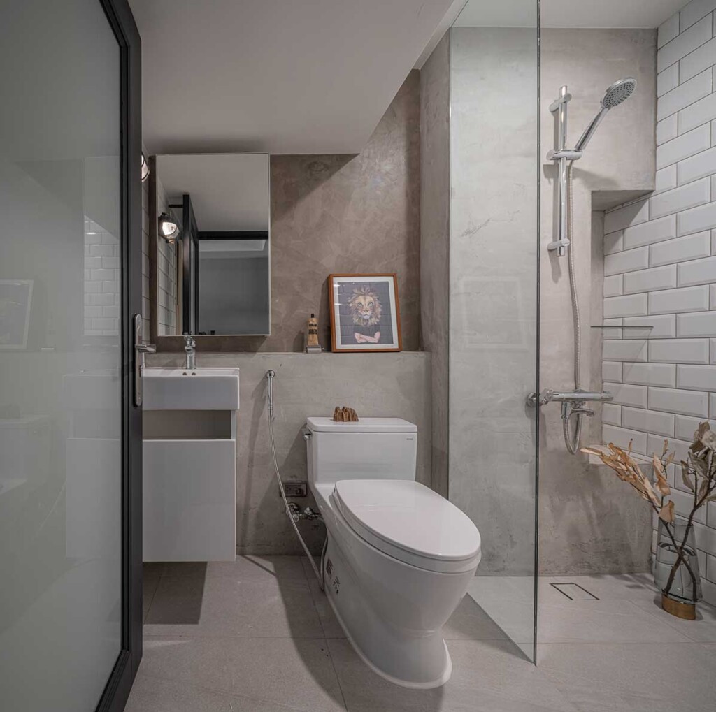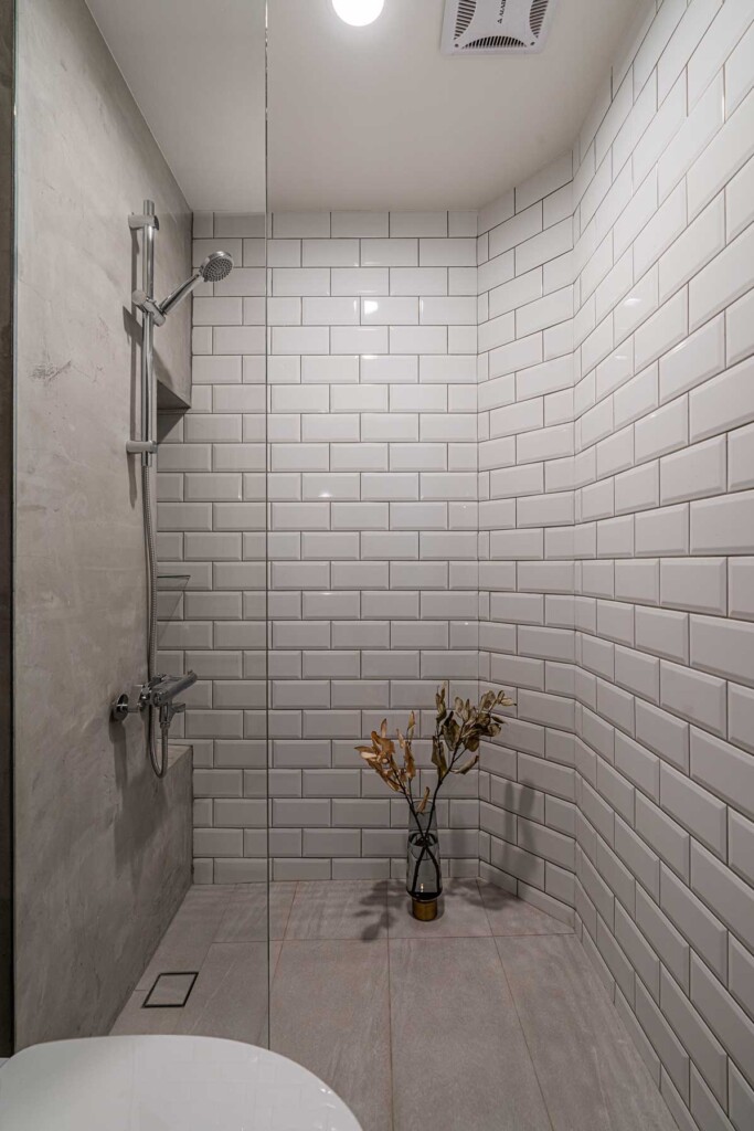 浴室石材紋理磁磚鋪陳,獨立浴缸成為空間焦點,承載疲憊,釋放壓力。是家的歸屬感,更是生活的緩衝區,讓身心在光影流轉間,緩緩放鬆,準備迎接新的旅程。