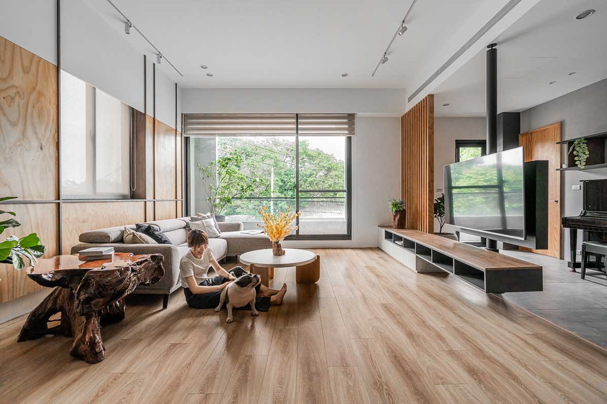 這次的設計理念以「簡約、實用、開闊」為核心,尊重老房子的原有結構,透過精緻的空間規劃與材質搭配,打造一家四口及小狗舒適自在的生活環境。
