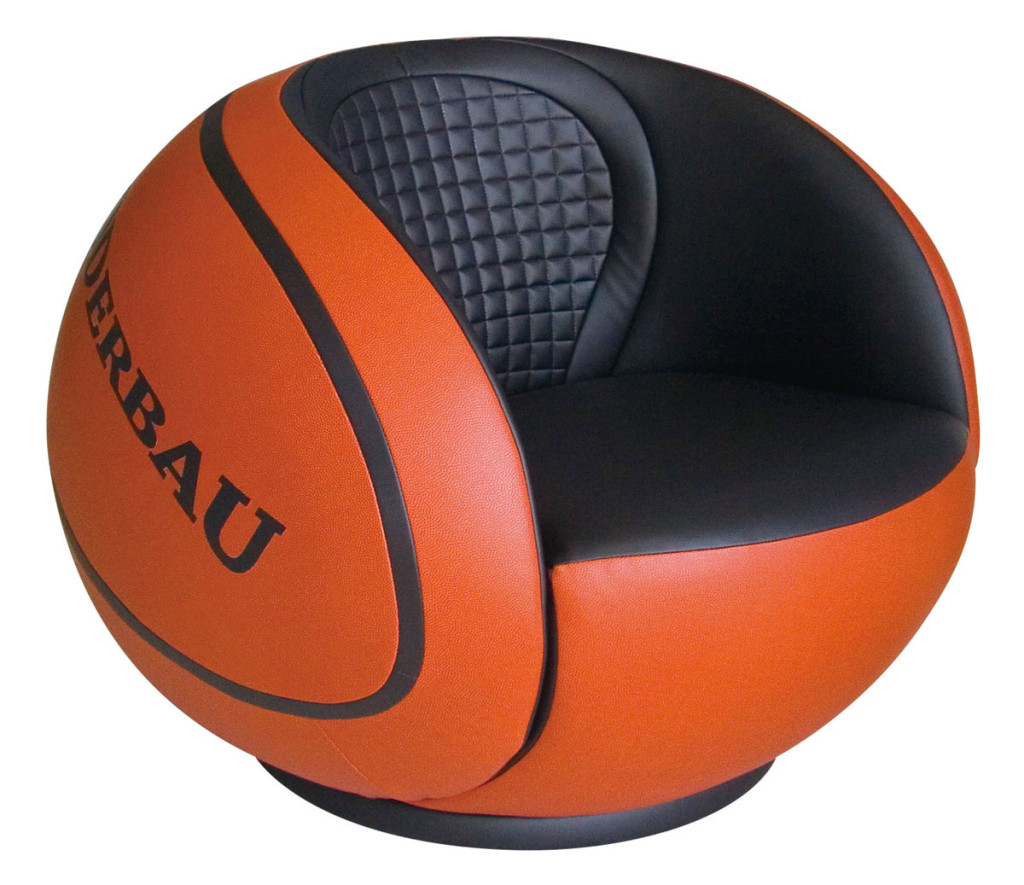 籃球沙發椅:除了運動風造型之外,更結合超細纖維材料作為面布,不僅通過SGS測試不含有害物質,也免保養、易清潔;底座也設有可旋轉360度的鋼骨結構,增添便利性。(歐得葆家具)