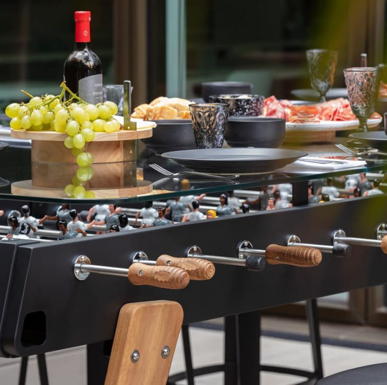 西班牙娛樂桌:實木桌腳的設計,保持手足球桌的本質和有趣精神,並為生活的各種模式增添功能性,讓餐桌前享用美食的日常,也有隨手來場比賽的樂趣。(7OCEANS︱RS Barcelona)
