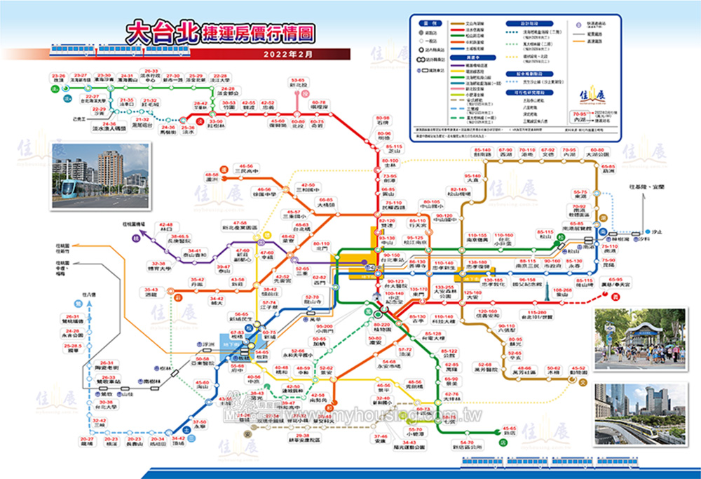 在大台北地區,捷運站點周遭通常是區域房價的指標。隨著近兩年來全台房價逐步攀升,各站點附近行情也跟著提高。據本刊統計,大台北目前一六九個已通車及興建中站點裡,就有五十八個站點,周遭房價行情年漲幅超過十%,且各條路線幾乎都有這些站點分布。近一年來,大台北捷運路網中,有哪些區段漲幅較為明顯?又是哪些利多帶來漲勢?《住展》為您一一解答。