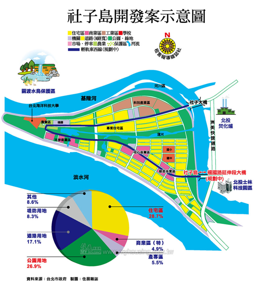 根據二○二○年經北市都委會通過的《擬定台北市士林社子島地區細部計畫案》,社子島將採中低密度開發,劃設住宅區、商業區、科技產業專用區等分區,預計可提供約一二○公頃可建築土地。