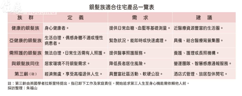 面對百百種且多元的銀髮住宅,不同需求的銀髮族,