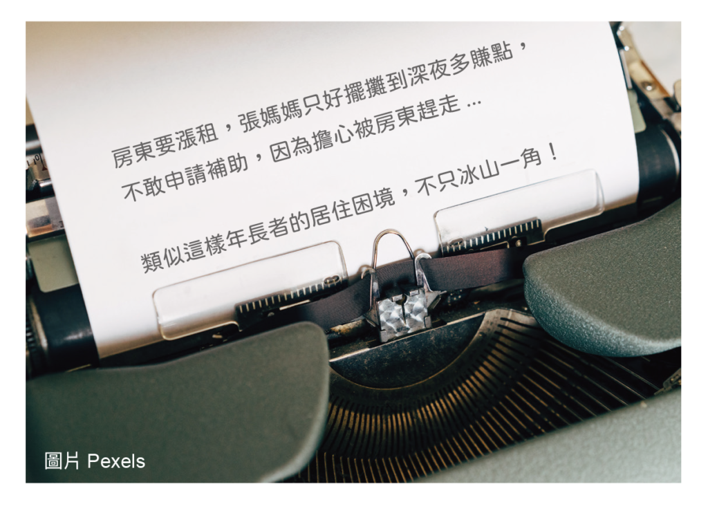 言談間,只見張媽媽滿臉的愁容,且語氣充滿無奈。事實上,這樣的案例不過是社會的冰山一角,還有更多長者每天都得面對日益艱辛的居住困境。長期協助長者租屋的崔媽媽基金會曾調查,九成以上的房東不願意租屋給長者。也有部分長者並非經濟弱勢,卻也非寬裕到可以住進民間較高檔的銀髮社區,這些中低產階級的長者,可以負擔合理的租金,也有高齡住宅的居住需求,卻仍被租屋市場排斥。
