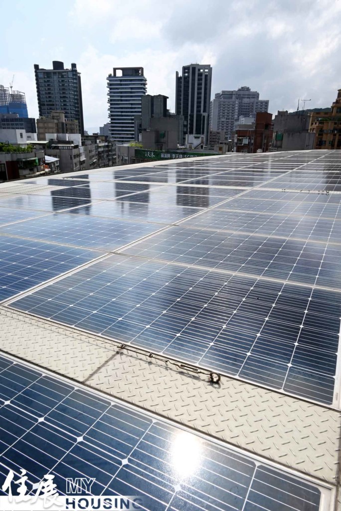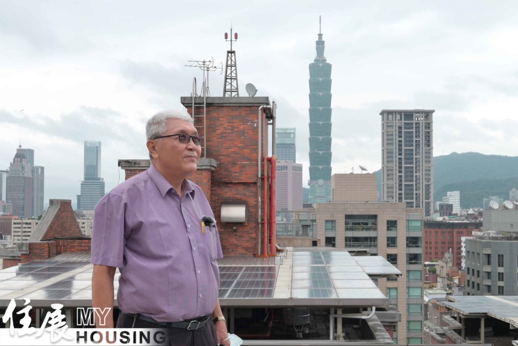 「社區加裝太陽光電有一大好處,就是會被台電列為不停電分區。」信義新城社區主委陳有鵬提到,加裝太陽能光電板還有防漏水、為建築降溫等優點,「後來頂樓鄰居最高興了,因為夏天能省下好幾千元電費。」