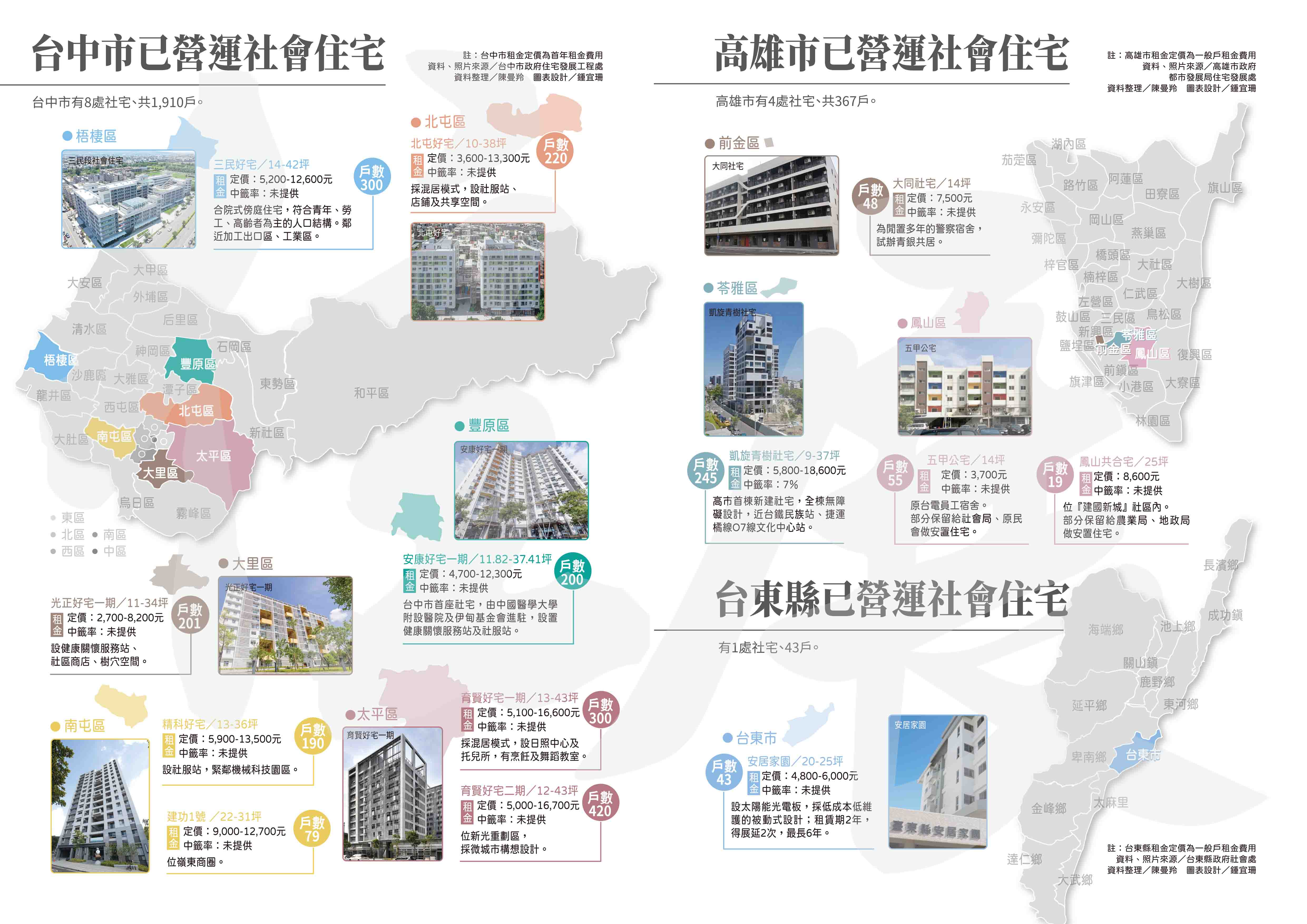 根據各縣市政府公布的資料顯示,截至7月19日為止,目前台北市、新北市、桃園市、台中市、高雄市及台東縣均有社宅投入營運,總計近二萬戶可供民眾承租。