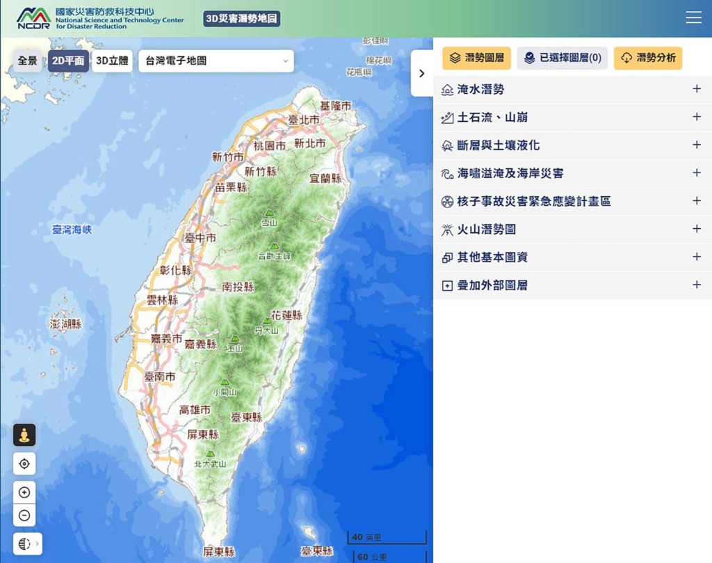 「災害潛勢地圖網站」提供民眾查詢該地區災害潛勢比例情況。(翻攝自國家災害防救科技中心)