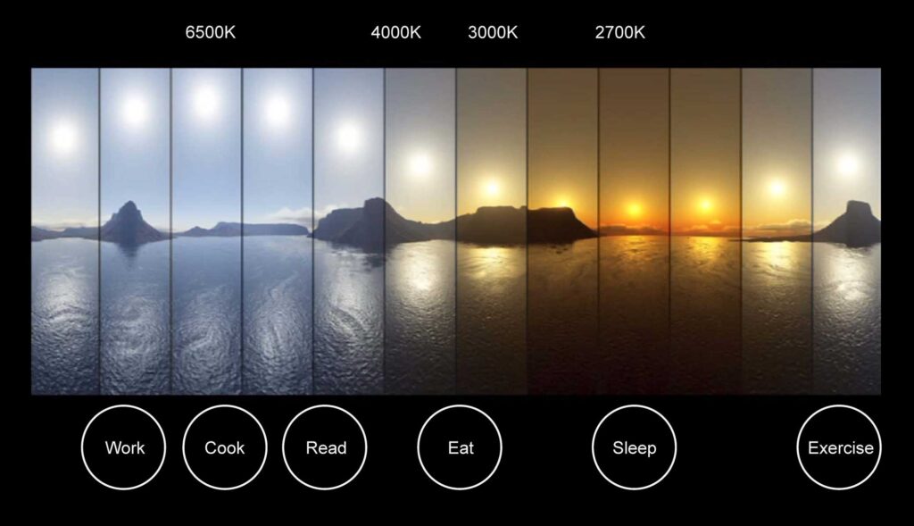 - 成人時期:有助於提升工作效率與生活和諧的光是這個時期的重點,善用色溫的變化,晝夜適應性照明調節人的生理機能,家中的光照明配置與燈具的搭配,決定能不能好好放鬆休息或是享用一頓美味的晚餐,就寢前使用低色溫橘紅色的間接照明讓松果體開始分泌退黑激素,進入沉睡的夢鄉。