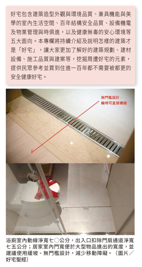 一棟百年好宅必須內外兼顧,依據統計,人的一生約有三分之一的時間是在「行動不便」的情況,包括童年、老年及生病或意外等。