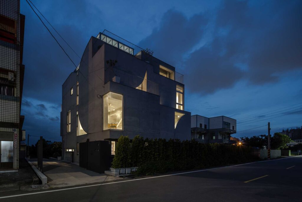 由於室內由十三個錯落樓板空間設計,為取得最佳採光,開口形式上王喆選擇由內而外。向上引導的開口,讓使用者可望向天空同時保有住家的私密性;向下引導的開口,讓視線由樓板延伸至農田,同時還可阻隔西曬陽光。