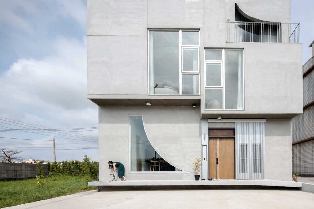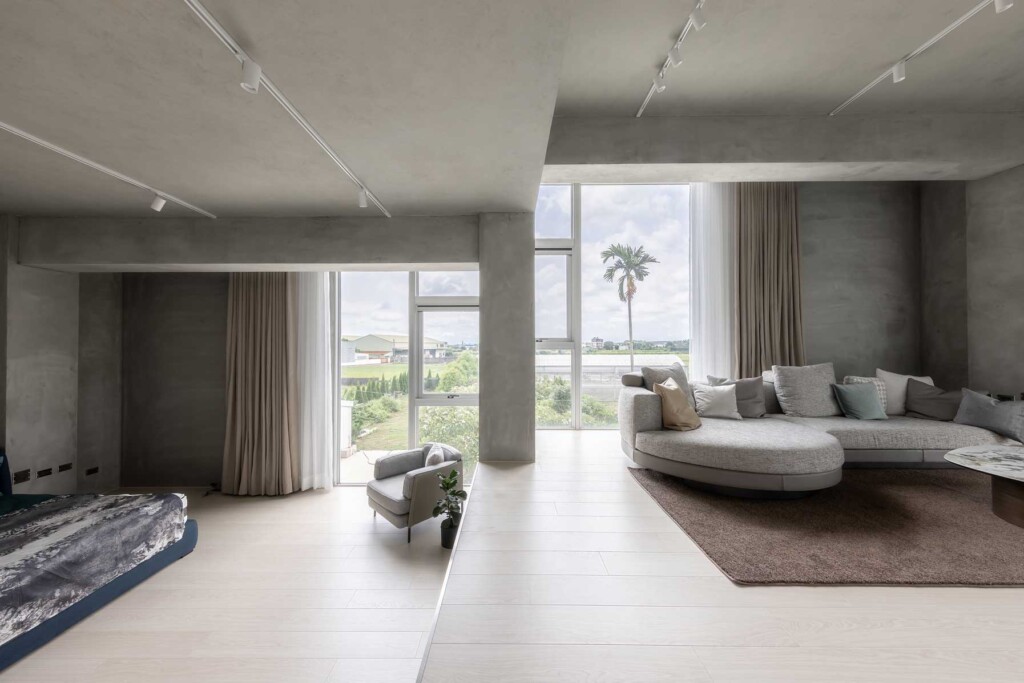其他開口則以局部框景方式,來過濾外部混雜的環境元素,臨路側也兼作業主對外的傢俱展示櫥窗,因此即便倆老在田裡務農,業主也可以待在室內不同的空間看到他們,正如建築與人、與環境共生的緊密關係。