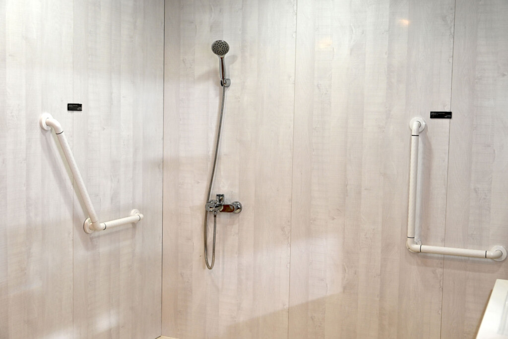 首先除了基本的乾濕分離外,浴室地板材也應選擇防潮且易排水之材質,並且加裝止滑條,降低滑倒的機率。再看加裝設備,最基本的還是扶手或類似設備,坊間業者針對不同需求,已開發設計出多款造型不同,功能從基本到進階的浴室扶手供消費者選擇。