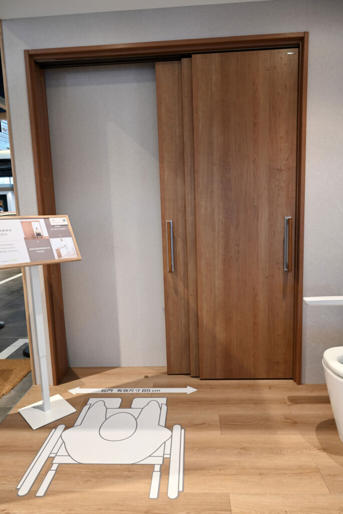 實務上,目前已在國內提出「樂齡居住提案」,來自日本的台灣松下,就相應推出了類似設備—橫式拉門,寬度更放大到85公分,讓必須倚賴輪椅的高齡或行動不便者更方便進出。