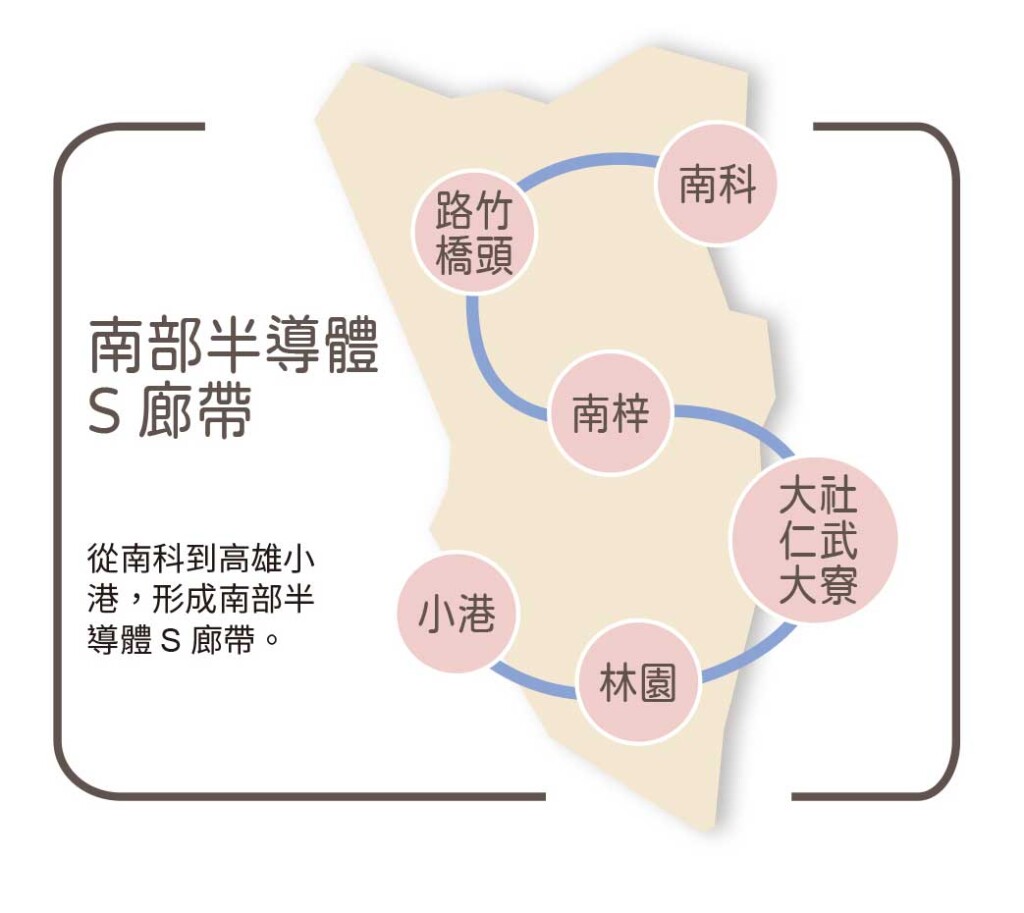 此外,橫跨南、高兩都的「南部半導體S廊帶」也迎來半導體相關供應鏈先後加碼投資高雄,包括英特格、默克、穩懋、群聯等,S廊帶已往先進製程布局,開始打造上中下游完整的半導體產業生態系。