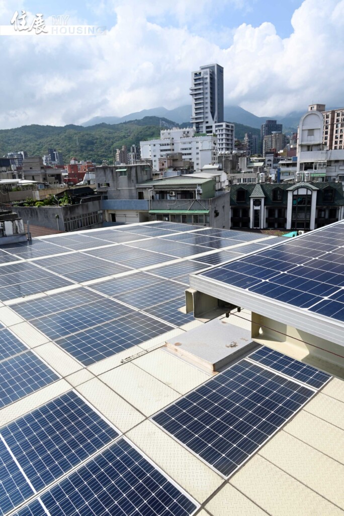 屋頂增設太陽能板(發電)也是途徑之一,尤其和十多年前相比,現在相關技術更成熟、材料價格也便宜許多,不過,仍有北部日照量不足,發電量太低等問題尚待克服;有業者曾實驗裝設風力發電裝置,最終因為噪音太大作罷。