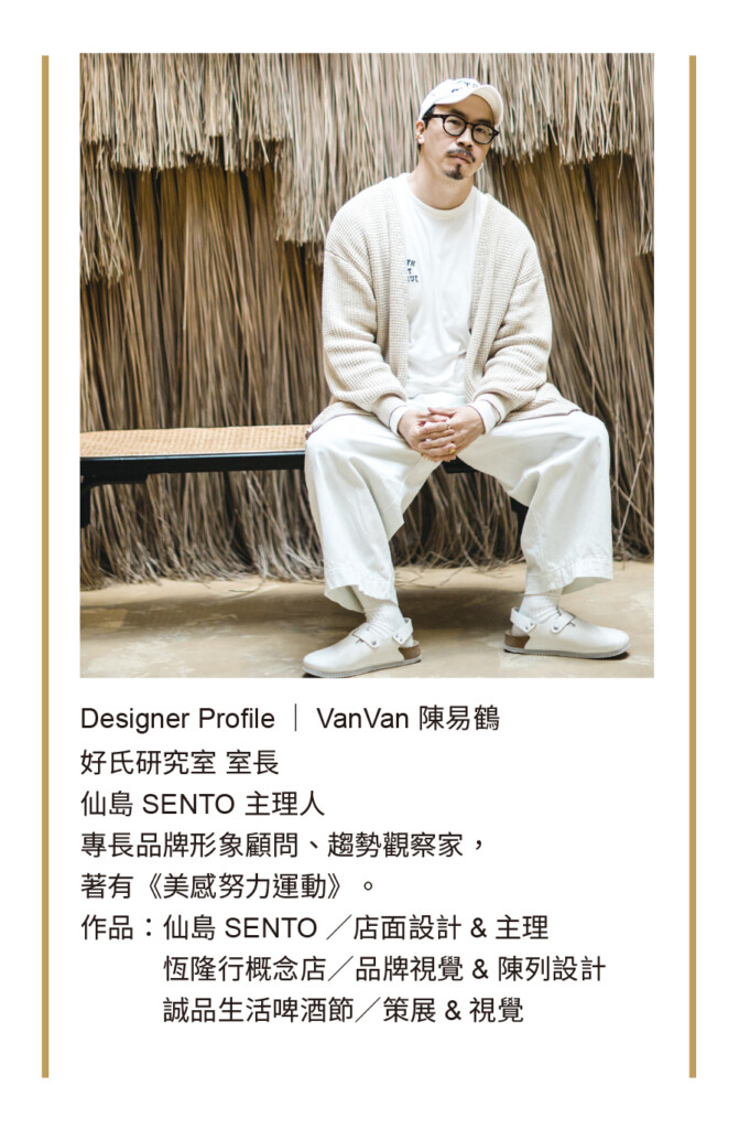陳易鶴從事品牌設計逾20年,擅長品牌形象顧問,更是一位趨勢觀察家,他認為每個人與生俱備的美感,卻在成長過程中漸漸遺失,因此還出版過一本獻給大人的美感工具書《美感努力運動》,他還走訪台灣各地到處去讓美「動」起來。