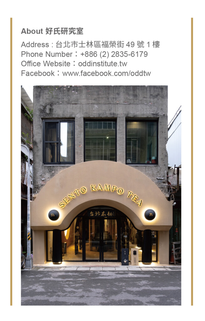 談起「仙島SENTO」,店內外空間採多元文化的特色風格,雖然陳易鶴並不希望被定義,然其店名發想自「蓬萊仙島」,本就意味台灣的物產豐饒,我們更不難從中發現不少台灣特有元素,包括裏頭大量採用的東方元素,像是店內香氣來源的藺草,這是來自於苗栗的藺編工藝,而柱子上刻有仙島漢文字樣,靈感則來自廟宇的芳名錄等,透過團隊的設計,將其包裝成經典IP,甚至期許可將其輸出至全球各地。