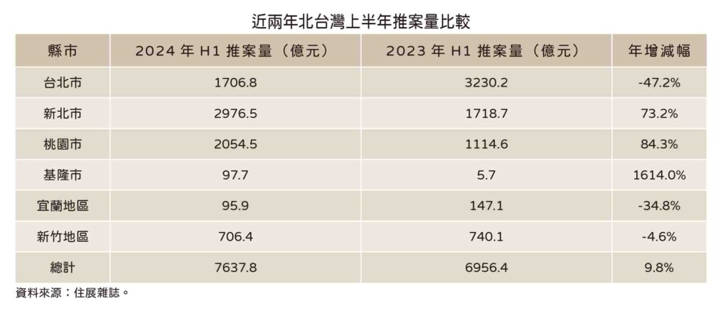 住展雜誌統計北台灣上半年的新案推案量已創下紀錄新高,來到7000多億元,下半年還有不少逾50億元,乃至數百億元的大案輪番上陣,雖然7月有新版囤房稅上路,八月為傳統民俗月淡季,預期干擾不了買氣興致,直到下次9月的央行會議前,若無特殊意外,房市有很大機率一路暢旺,下半年只要推出上半年約7成的新案量能,就將再創高峰,此等局勢究竟會走向泡沫,還是高到買不起順勢調節而達到恐怖平衡,我們接著看下去。