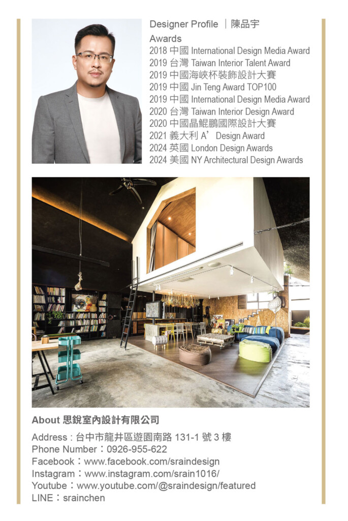 陳品宇為「思銳設計」的創辦人,擁有15年室內設計資歷,非本科系出身的他,剛入行沒有前輩幫忙帶領,只能完全從零開始,「當時不懂怎麼選擇好公司,只好一間一間去試,這間不適合再換一間,5年換了10間公司,但也因為這樣,室內設計的所有職位我都試過了。」