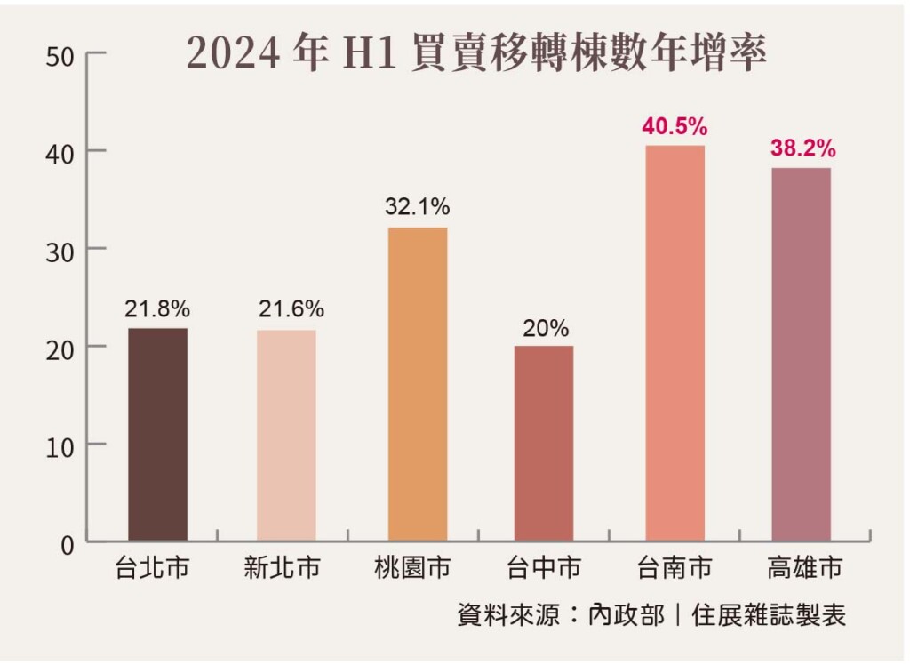 「新青安政策本身沒有錯,但錯在時機不對。」前淡江大學產經系副教授莊孟翰苦笑說道。自新青安推行後,讓全台本就居高不下的房價,可說是直接熱到失控,今年上半年六都買賣移轉棟數年增率皆暴增逾20%,其中台南市、高雄市年增率更來到40%左右的誇張數字;根據本刊調查,無論建案在山邊、海邊,都造成民眾一窩蜂搶購,幾乎「無處不熱賣」。