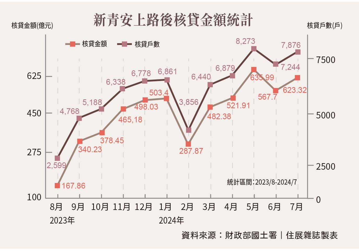 財政部統計,自2023年八月至今年七月底,新青安撥貸戶數共7萬3100戶、金額約5472.3億元,尤其今年六月開始,央行調高存準率一碼,讓各商業銀行本就快速飆升的房貸餘額提前來到滿水位,警報聲大響,甚至爆發史上最嚴峻的「銀行自主限貸」現象,如今市場已傳出自住、首購民眾紛紛受到波及,如今情況瀕臨失控邊緣。