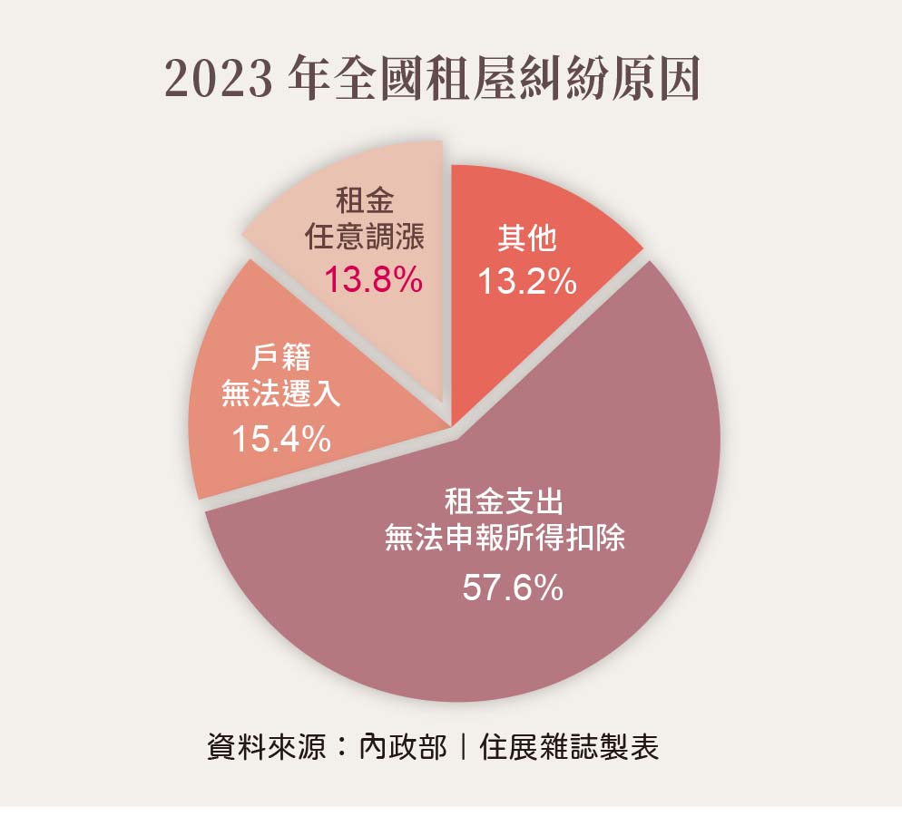 事實上,根據立法院預算中心資料顯示,該政策上路一年,也僅收到24萬9578件申請,對比國內300萬戶的租屋市場,執行率可說是極低。「如果要申請租屋補助,我就得報稅,那就必須漲房租喔。」就是這略帶威脅的交換條件,讓政府的補貼發不出去,細究內政部統計也能發現,全國有95.3%的租客曾遭遇租屋糾紛,其中超過一半正是被房東拒絕申請租金補貼的案例。