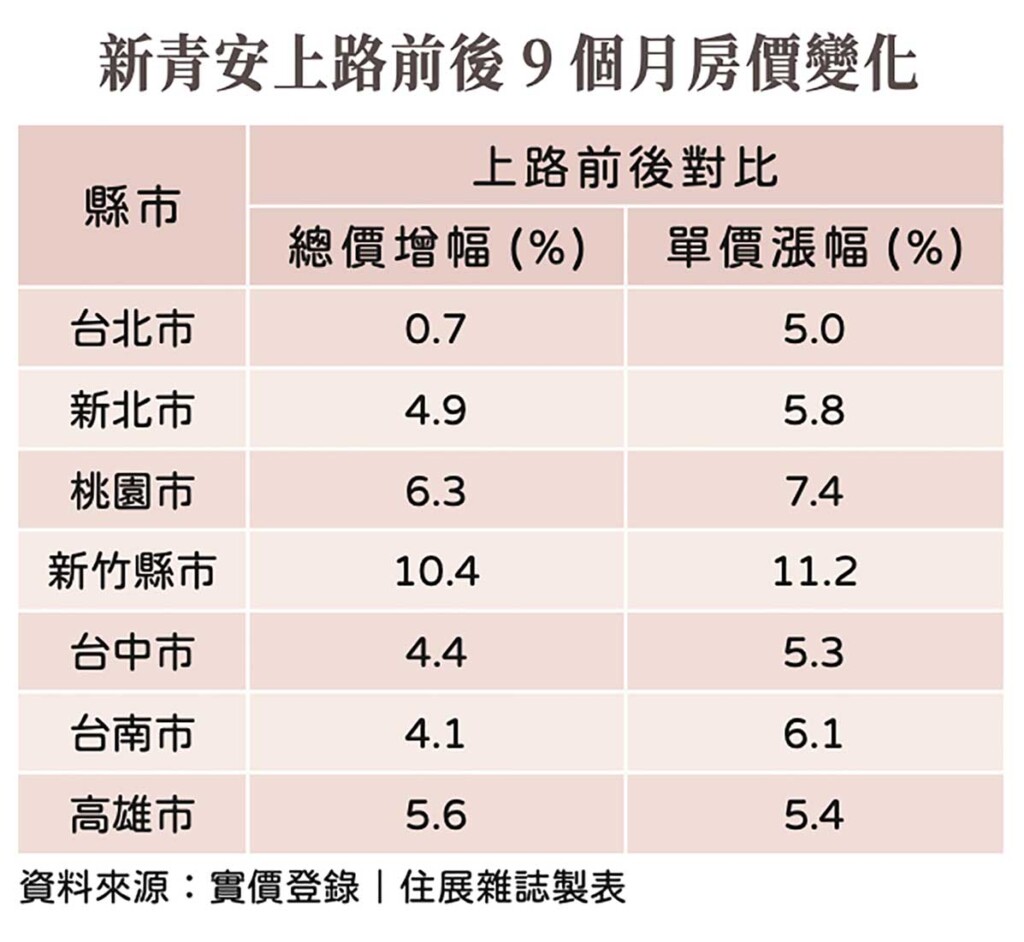 更嚴重的是,當市場供不應求,民眾開始陷入FOMO(錯失恐慌症)情緒,導致各種追價心態產生,房價漲勢也日益猖狂。根據實價登錄揭露,新青安政策上路後,短短九個月內,本就不在低點的新竹房價飆漲10%,桃園漲7.4%,台南6.1%,其餘都會區漲幅也都在5%以上。