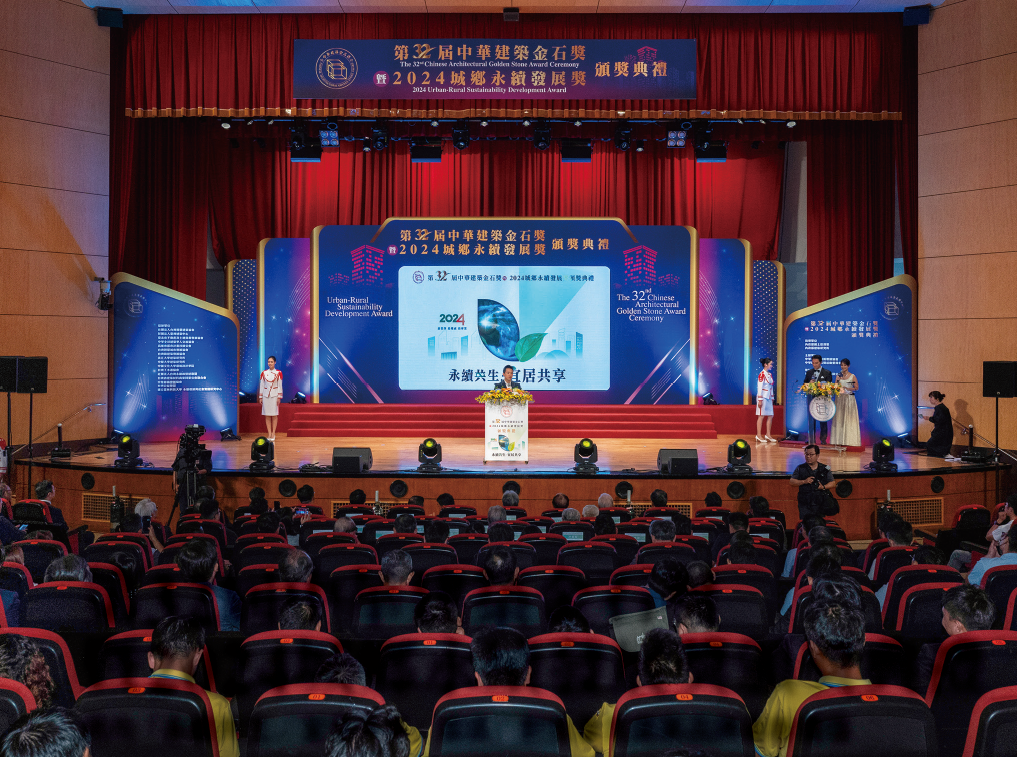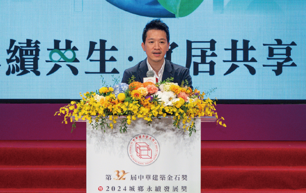 代表總統府出席的何志偉副秘書長於現場表示,很榮幸代表賴清德總統參與第32屆中華建築金石獎暨2024城鄉永續發展獎頒獎典禮,與大家一起見證臺灣建築界的卓越成就之際,也代表政府對於金石獎的高度重視。臺灣經濟的復甦成長,有賴於在座獲獎單位努力的成果累積,金石獎不但審核嚴謹,優秀個案也都是全國各地脫穎而出的佼佼者,是未來經濟發展的不可或缺的力量。而如今臺灣面對未來少子化與高齡化的問題,該如何以永續概念作為突破點,政府期待著聽見產業界的建議,也希望透過建築跟文化接軌,用建築與社會對話,一同打造更美好的臺灣。