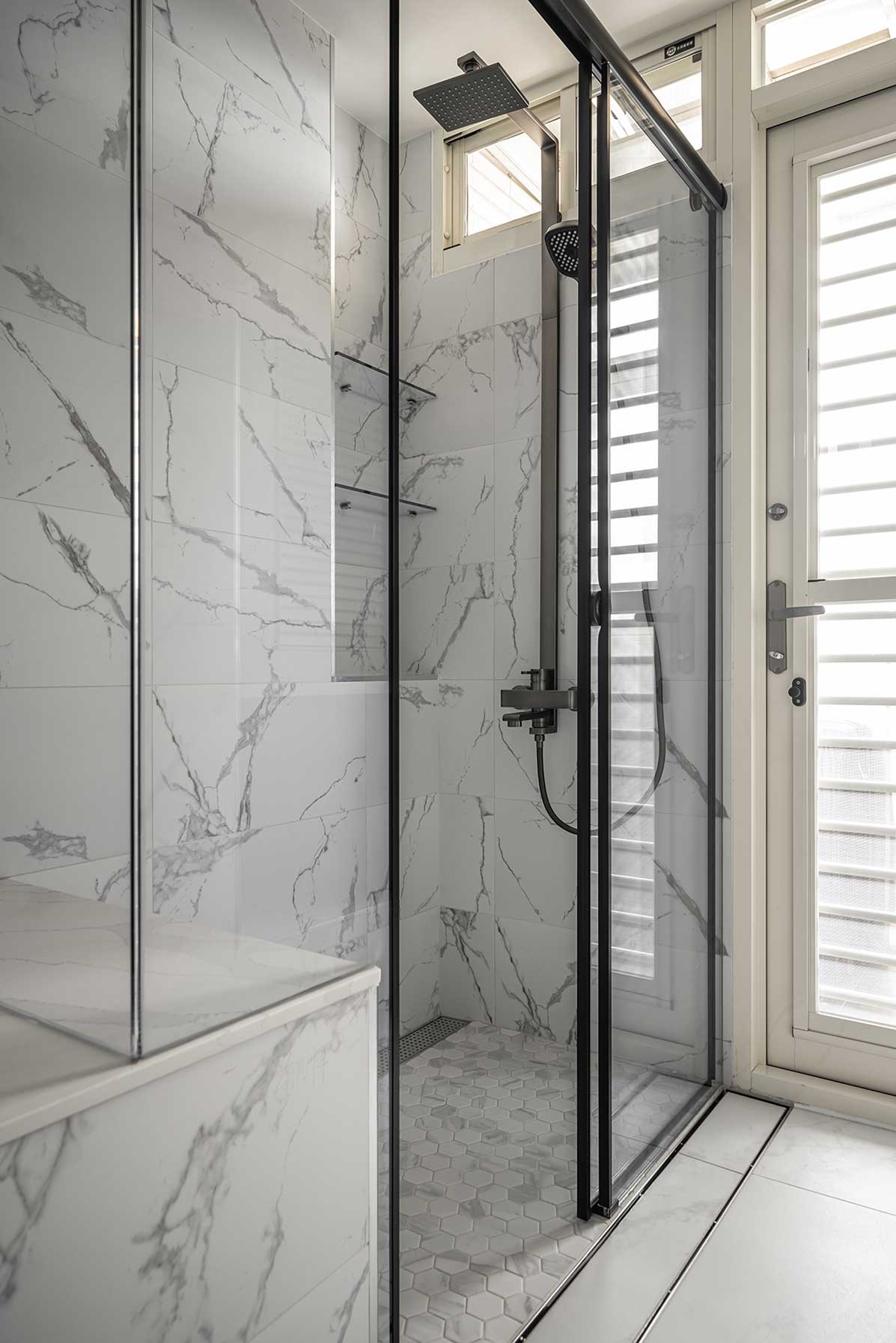 部分浴室會規劃乾濕分離,其中設置的淋浴門應選用內外雙開式,避免家人滑倒時發生開門障礙。另外,國內多數浴室的牆壁是磁磚材質,老人容易因為觸碰時會感到冰冷,而拒絕扶牆輔助行走,謝偉士建議可改用乾式施工法,採乾式矽酸鈣板、石膏板,搭配防水漆、防水壁布等,來替換傳統的磁磚材。