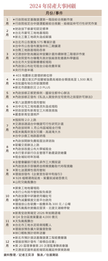 住展企研室與編輯室從嚴選本年度的55件關鍵新聞中,透過房產5大類要事,一覽今年不動產市場的脈絡。