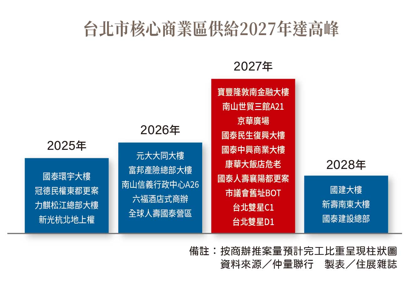 「現在新建的商辦大多還是以雙北為主,像是信義計畫區、南港、內湖、北投還有新莊等區域,光是百億大案雙北就有12棟,其中南港在未來五年會有近5棟101大樓的商辦量體。」陳益盛分享雙北地區商辦市場的都更潮,將會成為未來趨勢,新供給也會持續擴大。