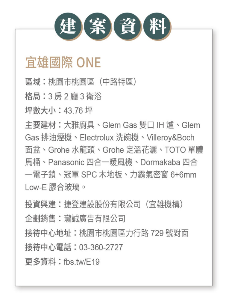 『宜雄國際ONE』造一座建築,化為一棵樹,讓居家洋溢在風光水綠,優雅入主~家、旅、居、遊~檜藝術館藏美宅『宜雄國際ONE』寬裕空間實住格局,名家演繹時尚風格實品屋,3房戶戶邊間,任意居遊樂享大面採光。