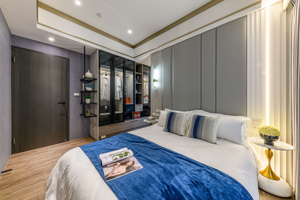 講究適居空間,訴求家寬生活尺度,雋永品味實住43坪大3房,臥室規劃均能容納雙人床與衣櫃、多功能邊桌優渥尺度,滿足高收納機能,並重視行走動線舒適,延展出的細節工藝,更創造出空間整合的高質感魅力,呼應自然光輕盈手筆,柔化了生活步履,形塑高感度生活風格表情。