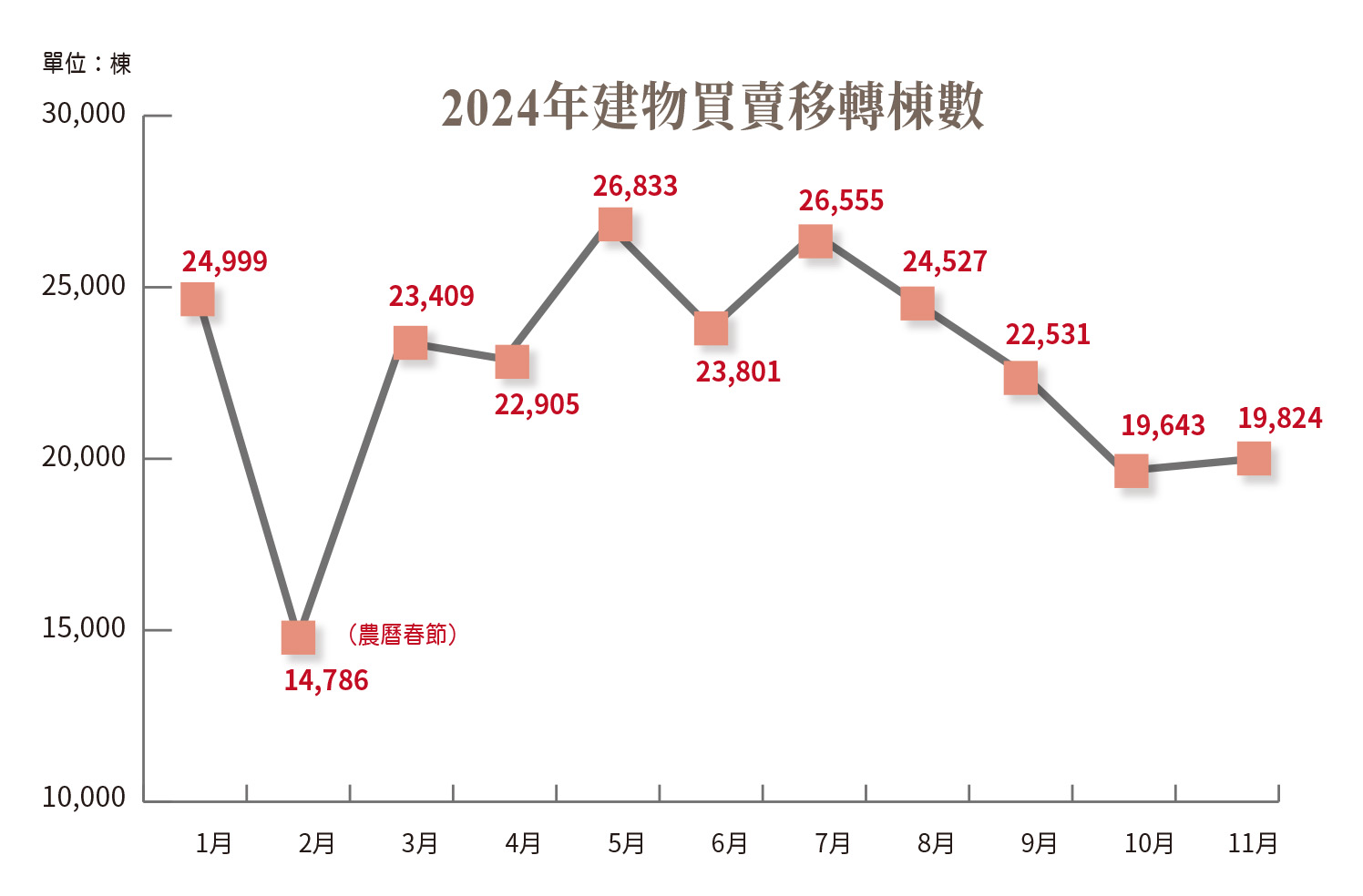 去年在各大社群平台上,充滿許多「我搭上新青安列車,終於買到房了!」的貼文、又或是接待中心的代銷專案提到,「這個案子很熱銷,開案不到一個月就賣光。」2024年的房市交易表現堪稱火熱,根據信義房屋公布最新數據,去年全年全台的建物買賣移轉棟數,推估落在約35萬棟,相較2023年大幅成長16.8%,更寫下11年以來新高紀錄。