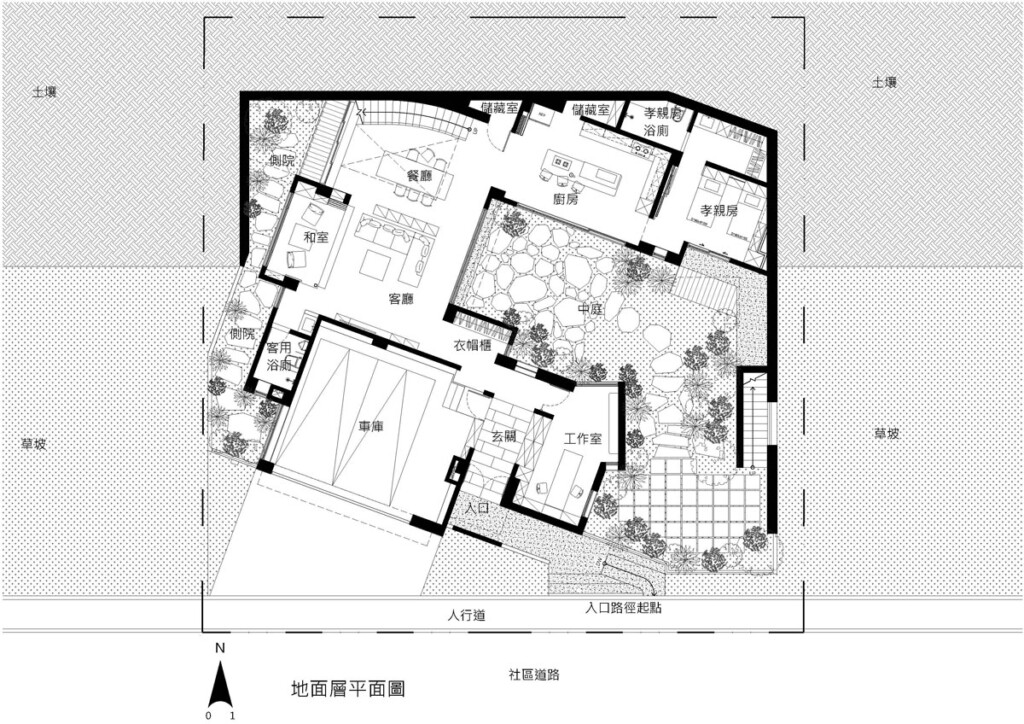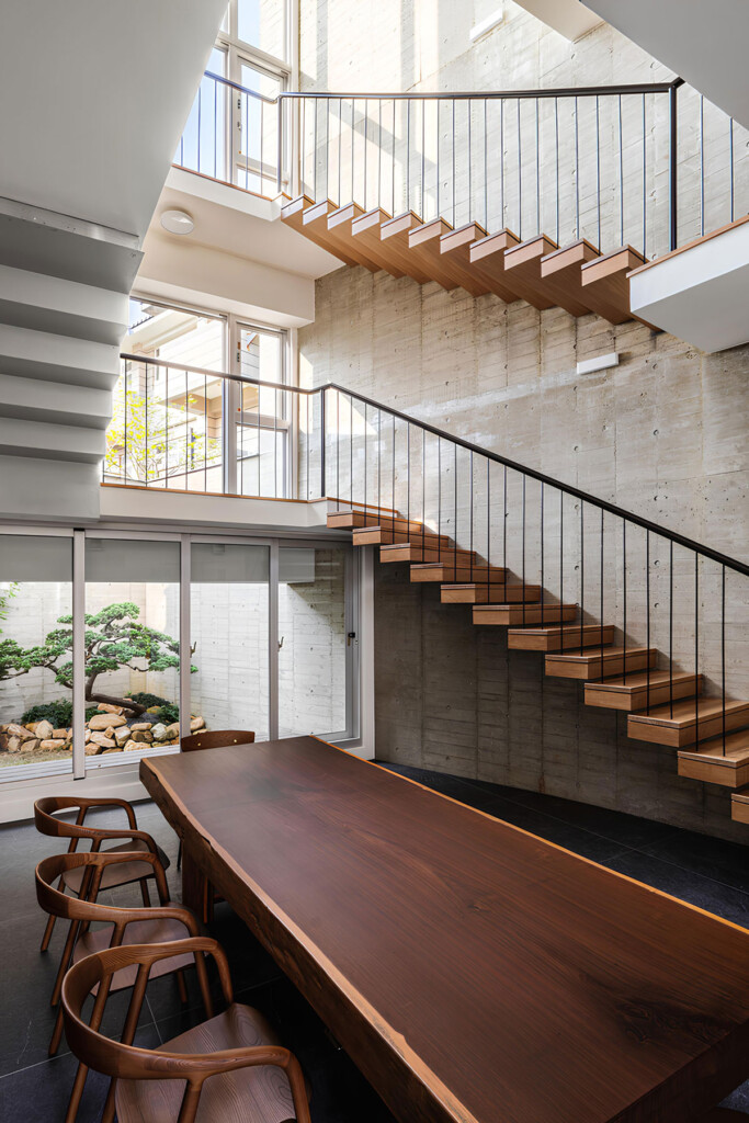藉由中庭留設,形成可融入各種生活情境使用的戶外空間,不僅能夠維持隱私,還能創造一個開放且實用的內院,進一步讓這樣的設計形成獨特的「內在宇宙」。