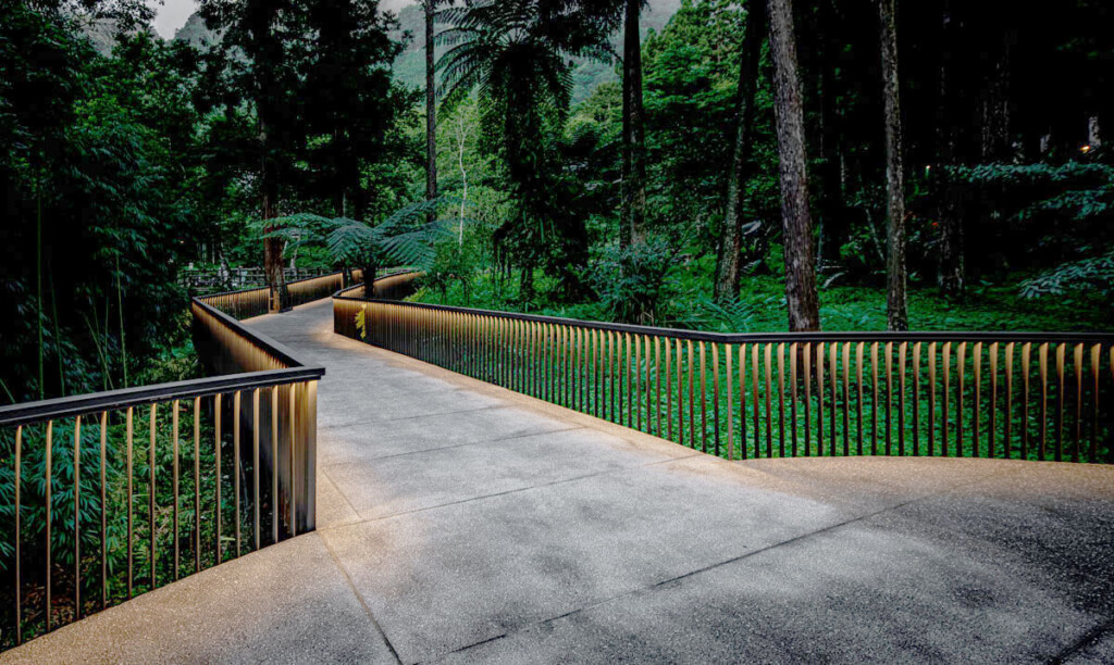 為了加強建築與自然環境之間的互動,步道直接通向草坪,讓旅客能夠親自感受建築與外界的緊密聯繫。沿途的照明設施則在下午與夜晚時段提供安全指引,滿足旅客與自然景觀積極互動之餘,更加舒適安心地享受室外環境。