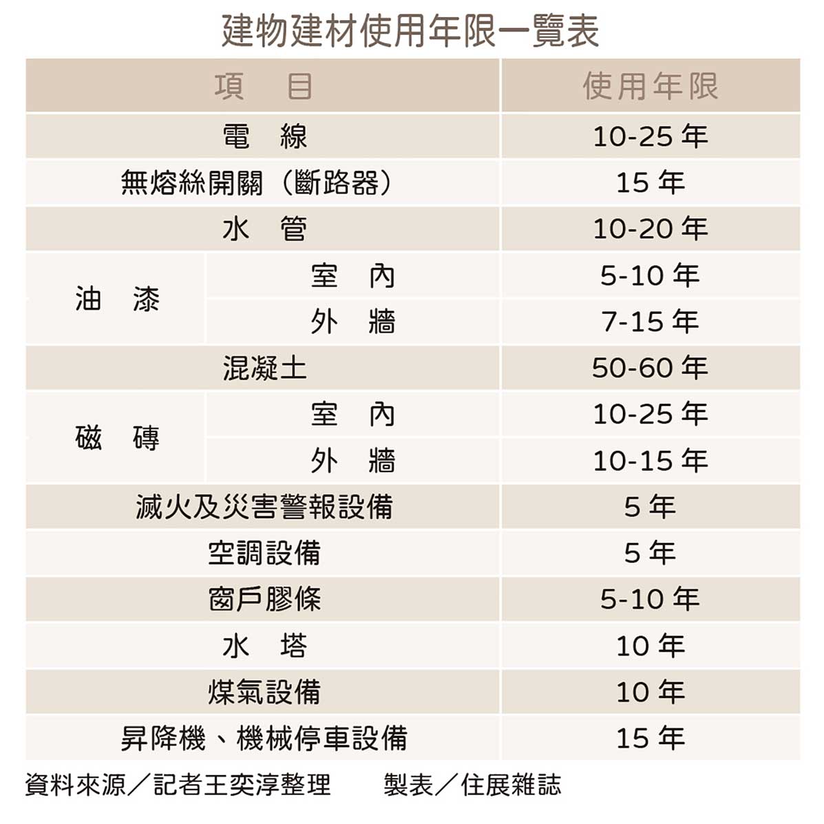 相較新屋,老屋因長年使用,建材性能衰退,甚至規格已不符現代居住需求,影響居住安全。銘傳大學建築系教授王价巨指出:「老舊電線引發的走火,及因材料選擇、氣候及疏於維護管理而常見的壁癌、磁磚膨拱等問題,都是居住者必須高度警覺的安全隱患。」