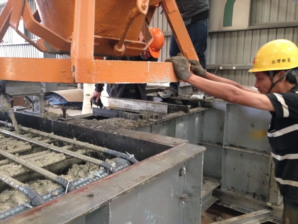 另一個則是鋼筋預組工法,執行方式是將在工地最耗人力及高技術的柱、梁鋼筋綁紮施工,轉換在鋼筋廠將整個柱、梁的每支鋼筋先預組綁紮完成,形成整體的柱、梁大型構件,再載運至工地,應用吊車或塔吊等吊運機具,於工地現場直接吊裝組立完成,充分利用機械能量替代勞力,減少人力需求同時,藉由鋼筋廠預組的有效品質管控,有效提升鋼筋工程施工品質,強化房屋的結構安全。