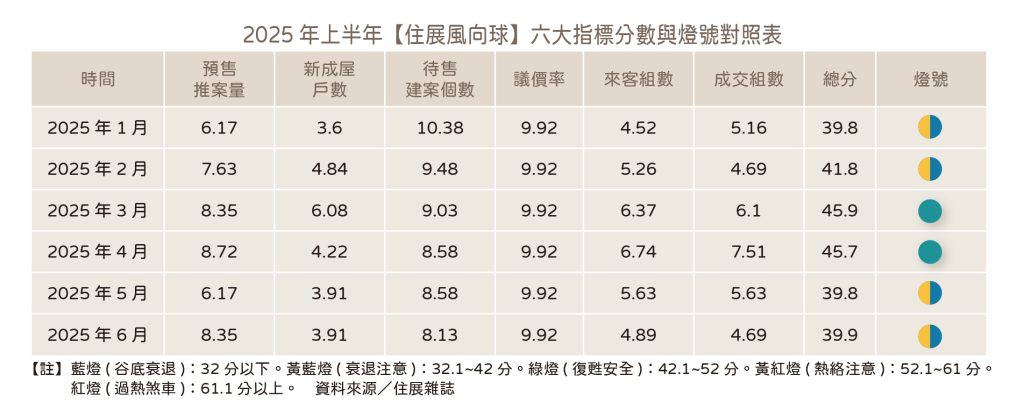 觀察上半年房市狀態確實悽慘,指標數據「住展風向球」一共亮出了四顆代表衰退的黃藍燈,新公布的六月結果顯示需求買氣依然不振,追蹤指標建案每週平均來客組數、成交組數再降,來客組數為15.7組,成交組數是1.1組,與正常水位有倍數落差,台北市南港區、新北市林口區和三重區的個案亮點難撐大局,追蹤案中單周出現零交易紀錄案,與低於十組的賞屋量案分別都達四成,案場等無人,大為影響銷售人員業績,不乏離職謀求他路。