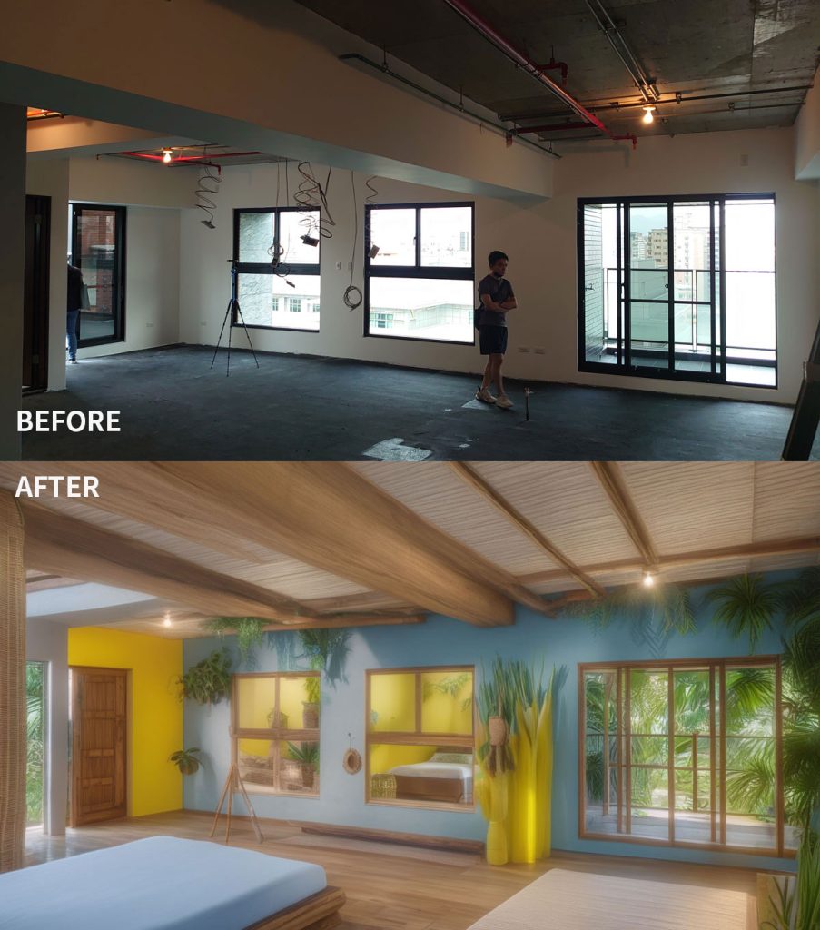 然而,在方便快速的背後,卻也存在著一定程度的風險,「有些設計看起來很符合需求,但實際根本不可行。」吳宜哲舉例,客戶自行生成的AI圖,圖中將床擺放於大樑下方,也有客戶想在大樓裡挖池塘,甚至還希望打通樓板、打造日式天井,這些看似荒謬好笑的過程,實則反映出AI帶來的虛實混亂。