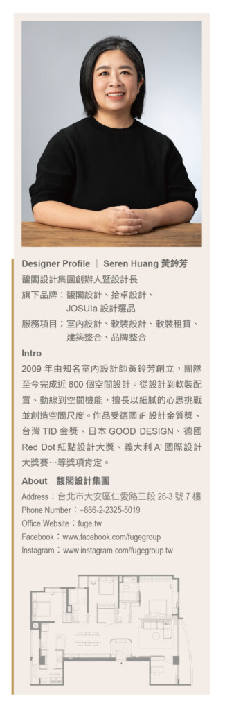 「設計要有所為,也要懂得無為。有為是解決結構與比例,無為是讓材質與光影自己說話。——黃鈴芳」