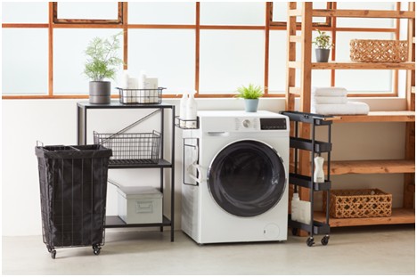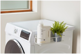 另外,磁吸收納架則可放置常用的洗衣精、柔軟精、曬衣夾等,打造有序的居家空間。