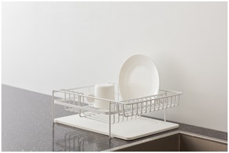 INK鐵線收納瀝水架附吸水珪藻土墊設計不同尺寸格柵,除了放置不同盤型碗型,也可平放於流理檯面,附贈吸水珪藻土墊,檯面再也不會溼答答。