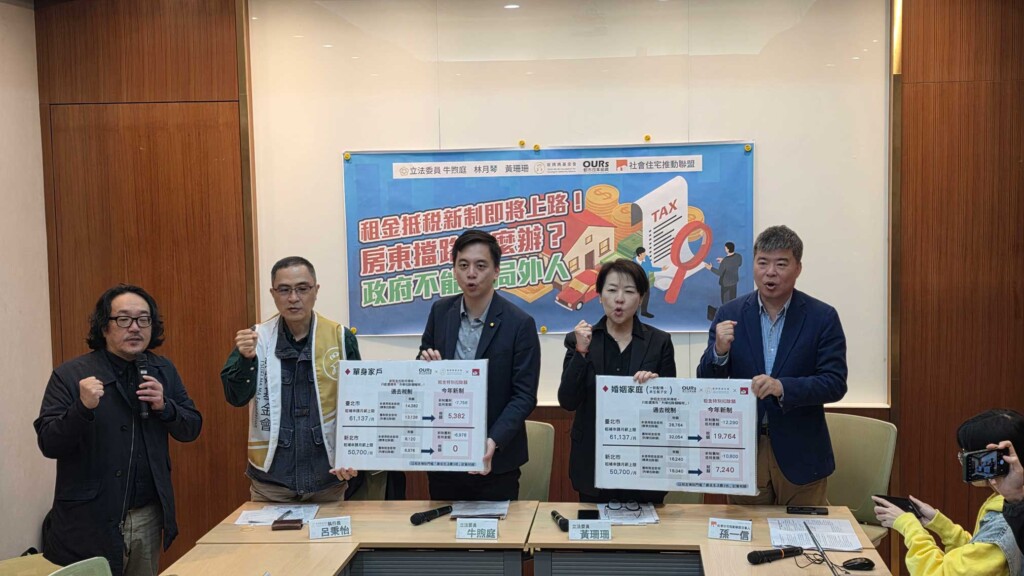 為讓新制真正嘉惠租屋民眾,OURs都市改革組織、崔媽媽基金會與社會住宅推動聯盟,邀集立法委員牛煦庭、林月琴、黃珊珊等跨黨派委員,於日前一同召開記者會,呼籲內政部應針對已加入補貼系統(社宅包租代管、租金補貼)的租賃雙方進行專案宣導;同時,財政部應設置「房客抵稅申訴專線」,並公開宣示若收到房東妨礙租金抵稅投訴,將專案查處以保障納稅人合法權益。